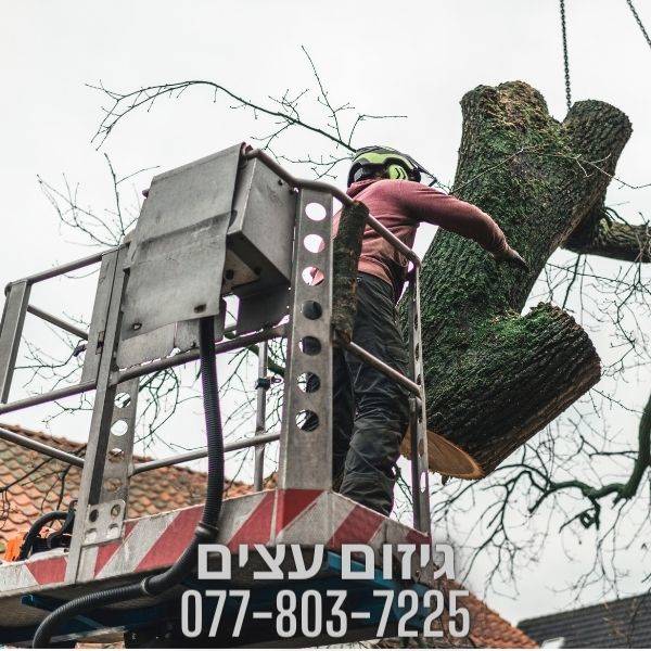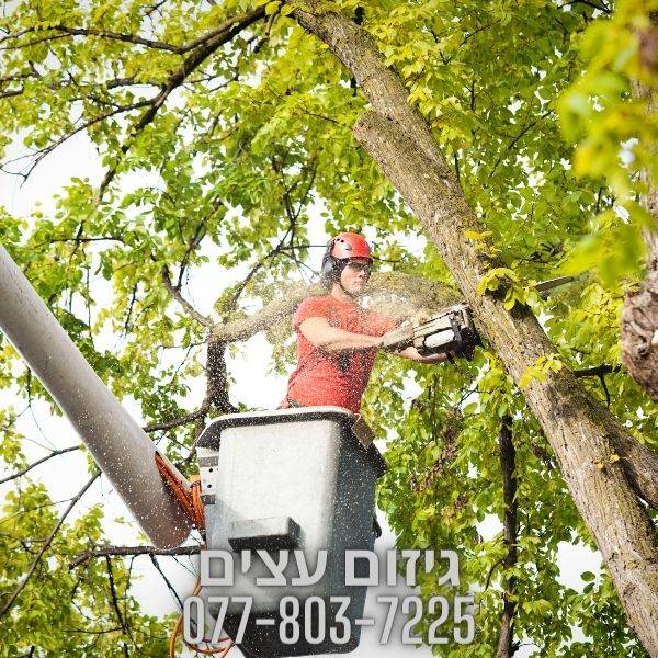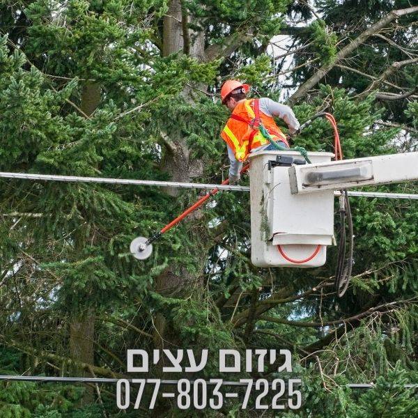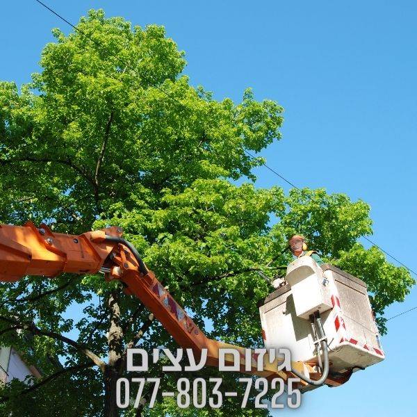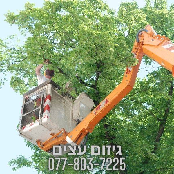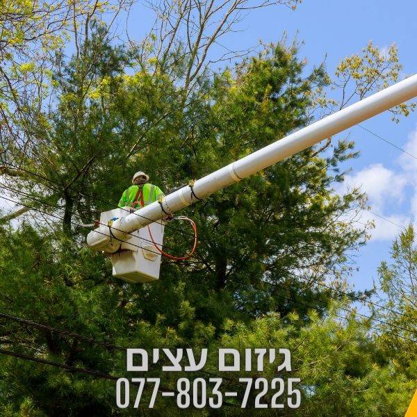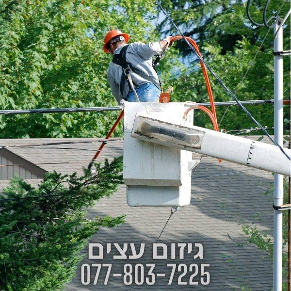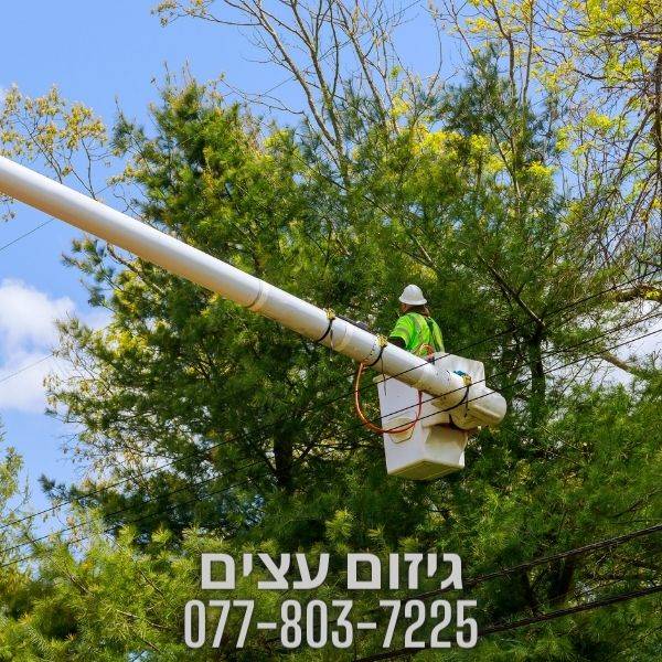 גיזום עצים ביציץ מקצועי, מוסמך, בגובה עם מנוף סל
